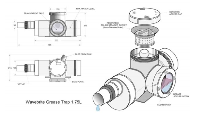 Wavebrite Grease Trap är ett bekvämt tillskott till Wavebrite-systemet. Den installeras i anslutning till diskbänken och tar effektivt bort matrester och fetter. Detta förlänger Wavebrite förfilters livslängd och förhindrar att fasta fetter stelnar i systemet. Fettfällan är helt tvättbar och finns i två olika storlekar, 1,75L och 4,50L.
